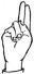 На ћирилици написано БОГДАН АЦАМОВИЋ састоји се из 14 слова [?]. Исписано ћириличном једноручном азбуком за глувонеме: